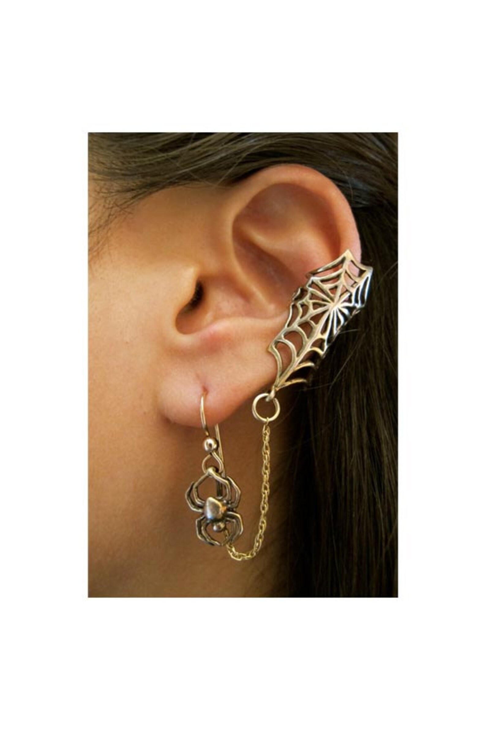 Spider ear cuff clearance, Spider Web Ear Cuff Bronze Web and Chained Spider Ear Cuff - Etsy clearance