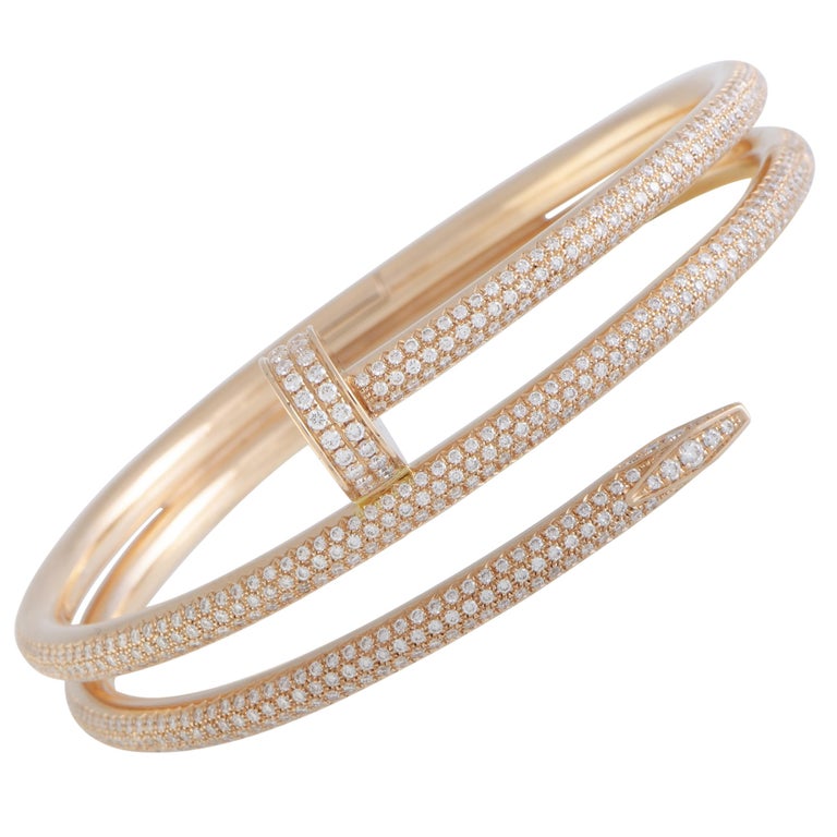Juste un clou full diamond clearance, Cartier Juste un Clou Full Diamond Pave Two Coil Rose Gold Bangle Bracelet at 1stDibs | cartier clearance