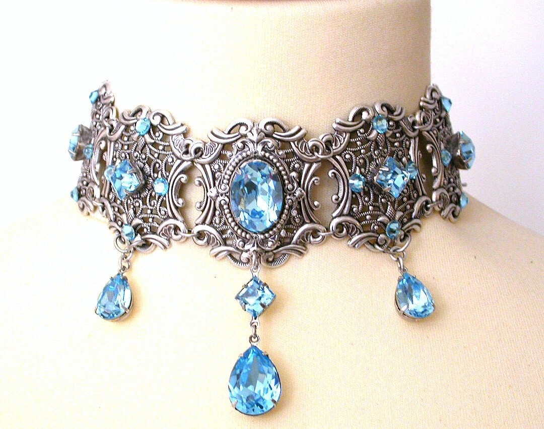 Swarovski ocean choker clearance, Aquamarine Swarovski Choker More Colors Victorian Bridal clearance