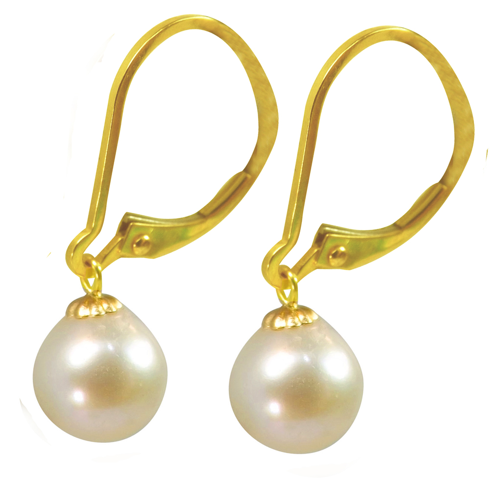 Pearl 18k gold earrings clearance, Classic and Elegant 18K Yellow Gold Leverback Round Pearl Earrings clearance