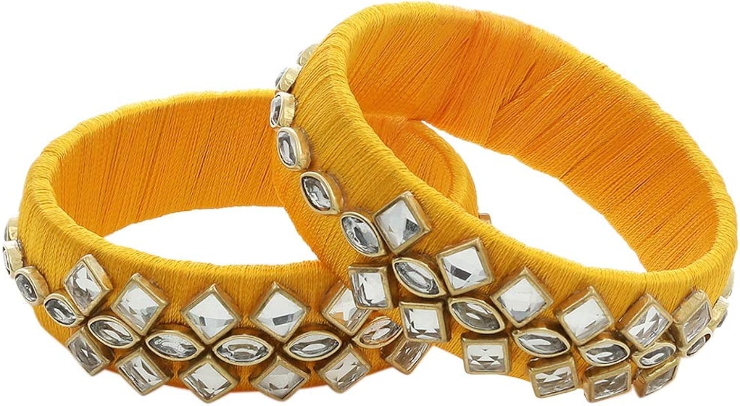 Yellow and blue silk thread bangles clearance, Blue and Yellow Kundan Ladies Silk Thread Bangle Set, Round at Rs 149/set in Indore clearance