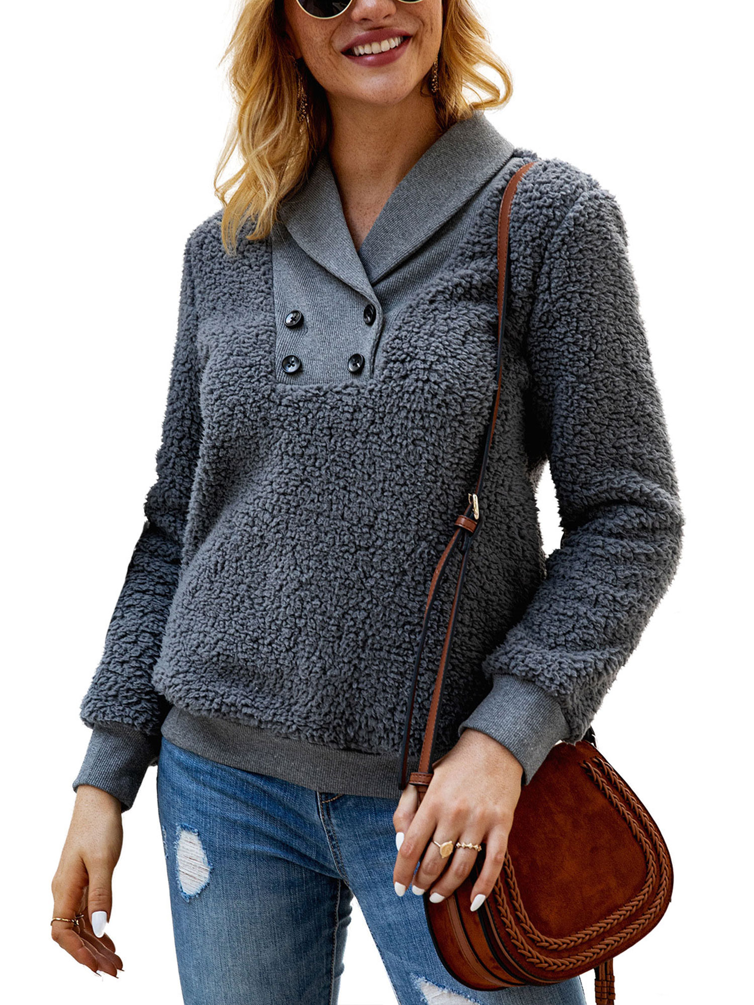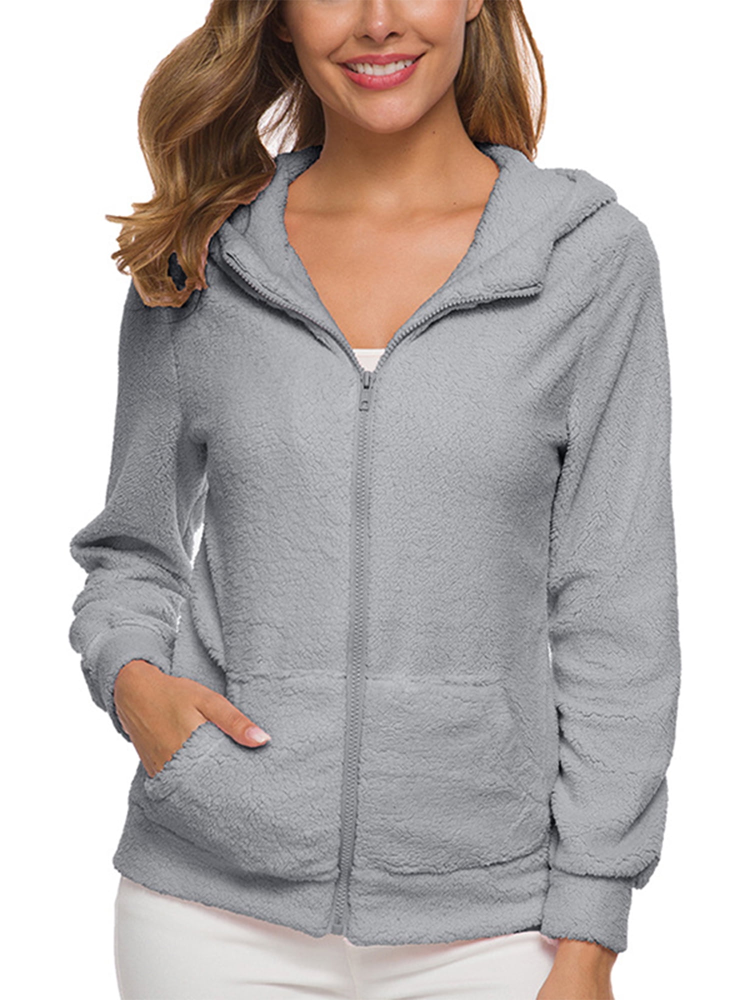 Walmart fuzzy sweatshirt clearance, Capreze Hoodies Front Zip Fleece Fuzzy Sweatshirts for Women Plain Long Sleeve Cardigans Winter clearance