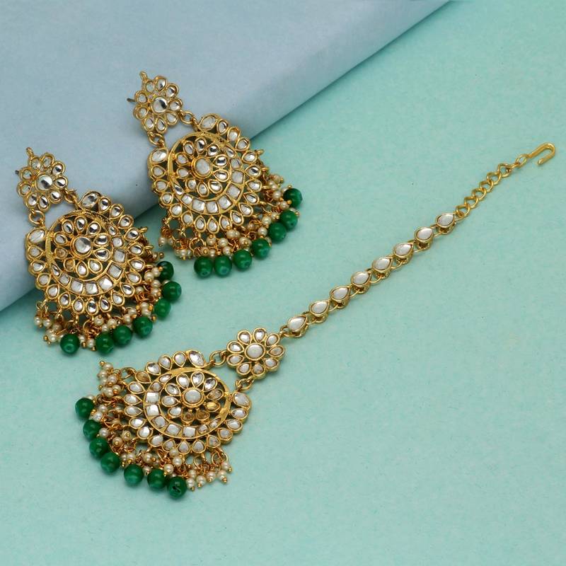 - Green earrings with maang tikka free shipping