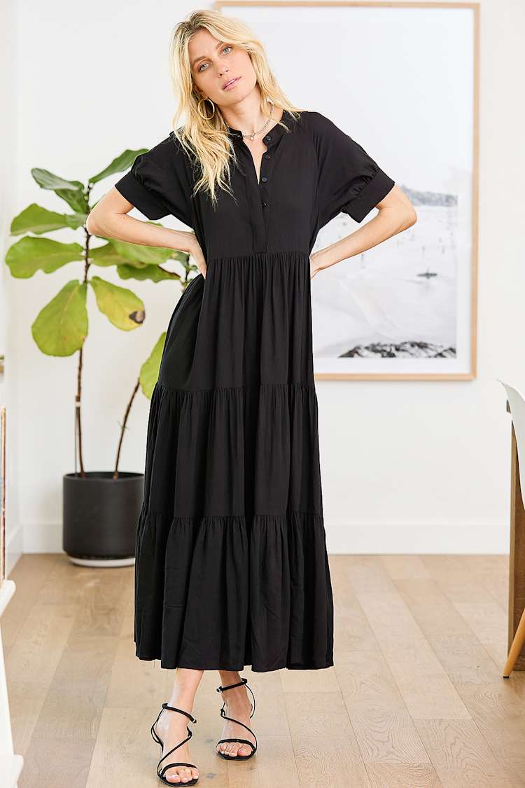 - Short sleeve black maxi dress sale