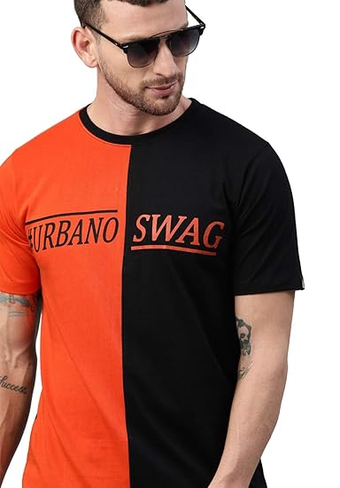 Black orange t shirt clearance, Printed Half Sleeve clearance