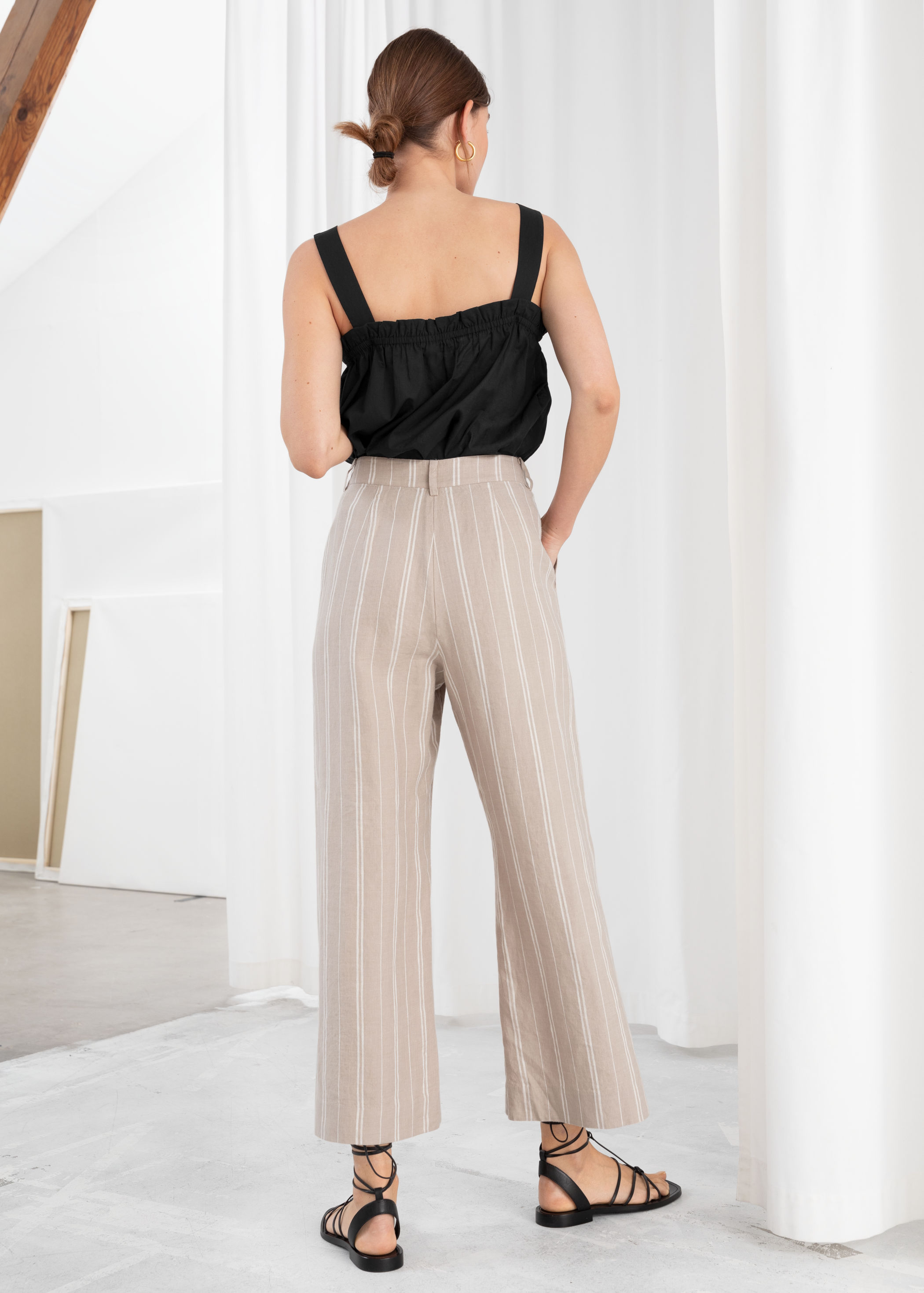 - Striped linen trousers