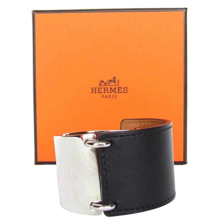 Hermes cuff clearance, HERMES 2010 Tan Leather Thick Cuff Bracelet W/ Silvertone Circle Detail at 1stDibs clearance