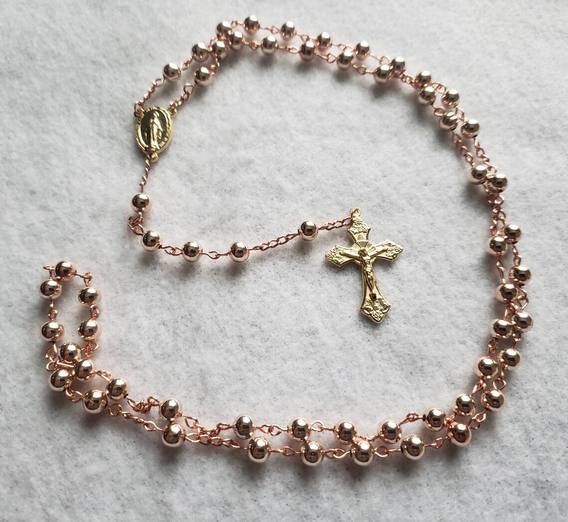 Rose gold catholic rosary clearance, Rose Gold Tone Metal Catholic Rosary With Miraculous Medal - Etsy clearance