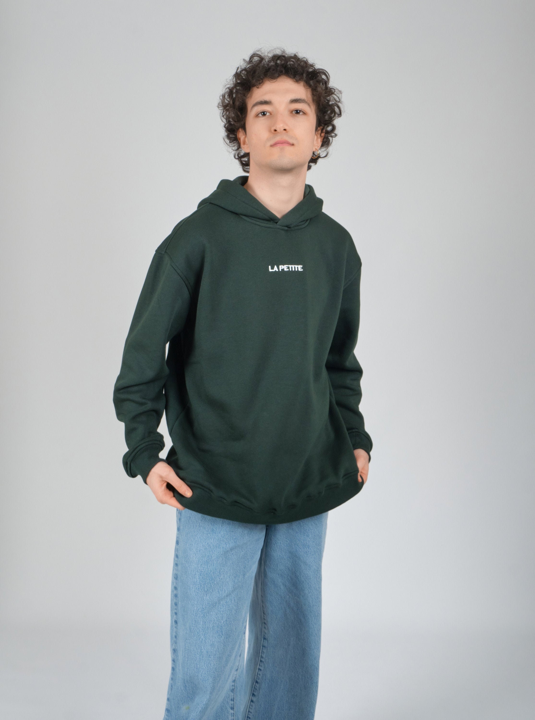 - Oversized dark green hoodie