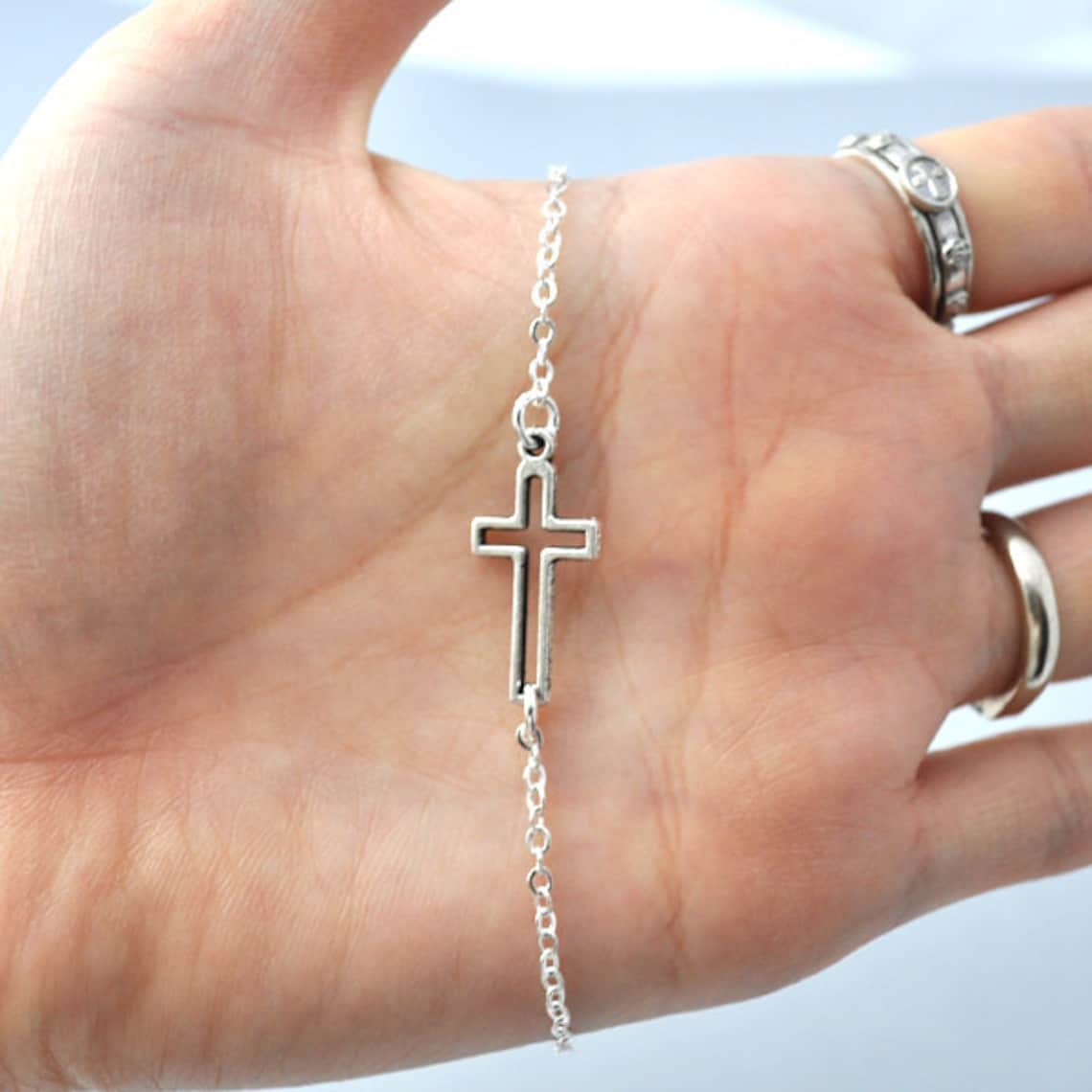 - Silver sideways cross bracelet shop
