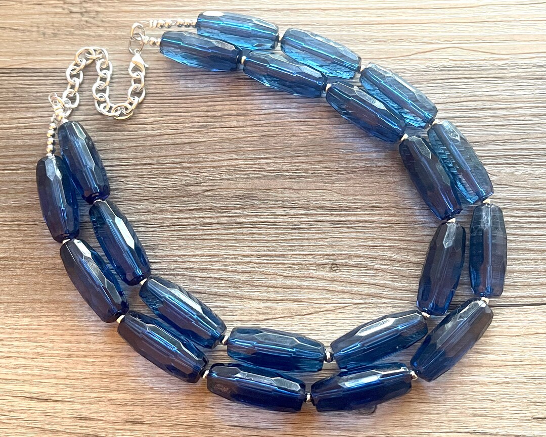 Navy blue beaded necklace clearance, Navy Blue Beaded Necklace Blue Jewelry Chunky Statement - Etsy clearance