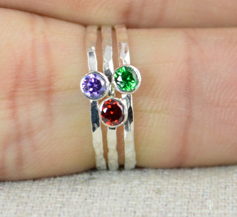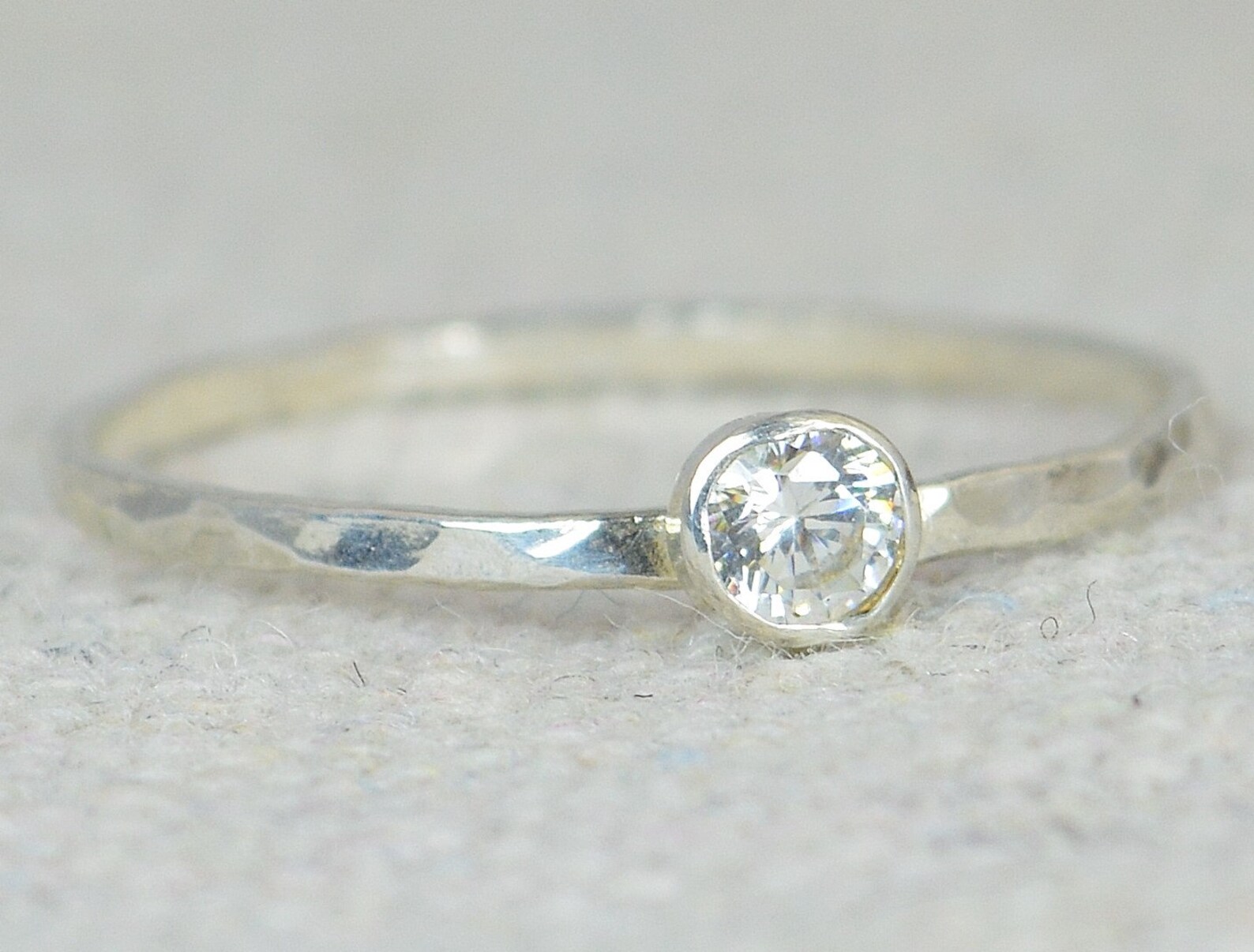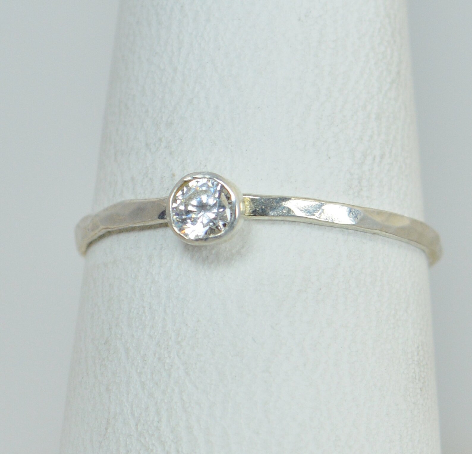 Dainty mothers ring clearance, Dainty CZ Diamond Ring, Thin Mothers Ring, Hammered Silver,stackable Rings,mother's Ring, April clearance