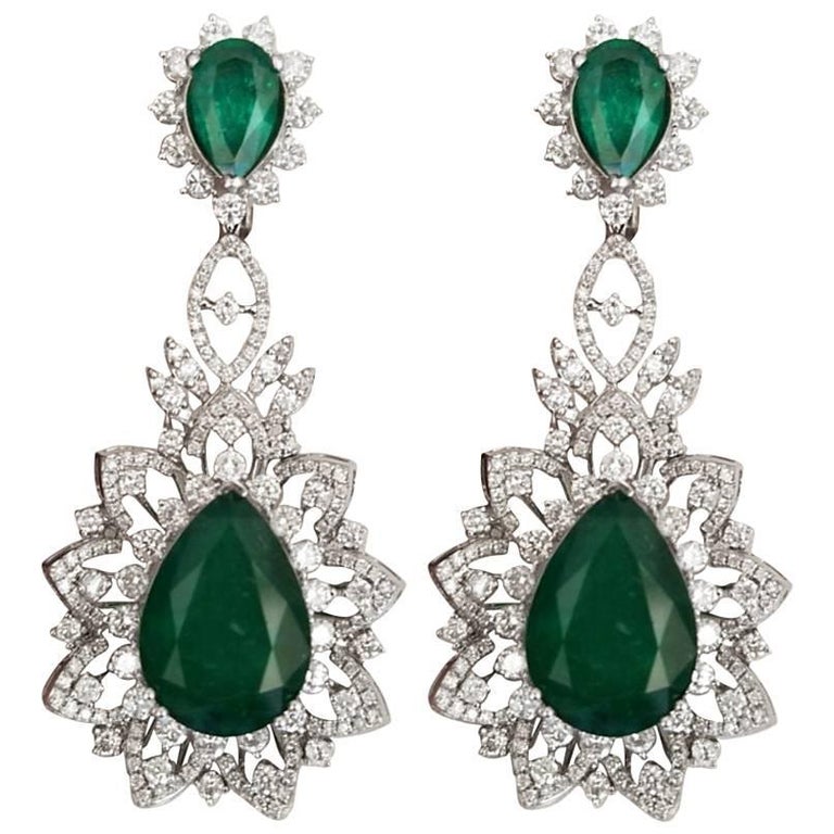 Emerald pear earrings clearance, Barmakian | Pear Shape Emerald and Diamond Drop Earrings | Barmakian Jewelers clearance