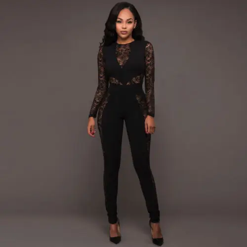Lace top jumpsuit clearance, Long Sleeve Jumpsuit Women Clubwear clearance