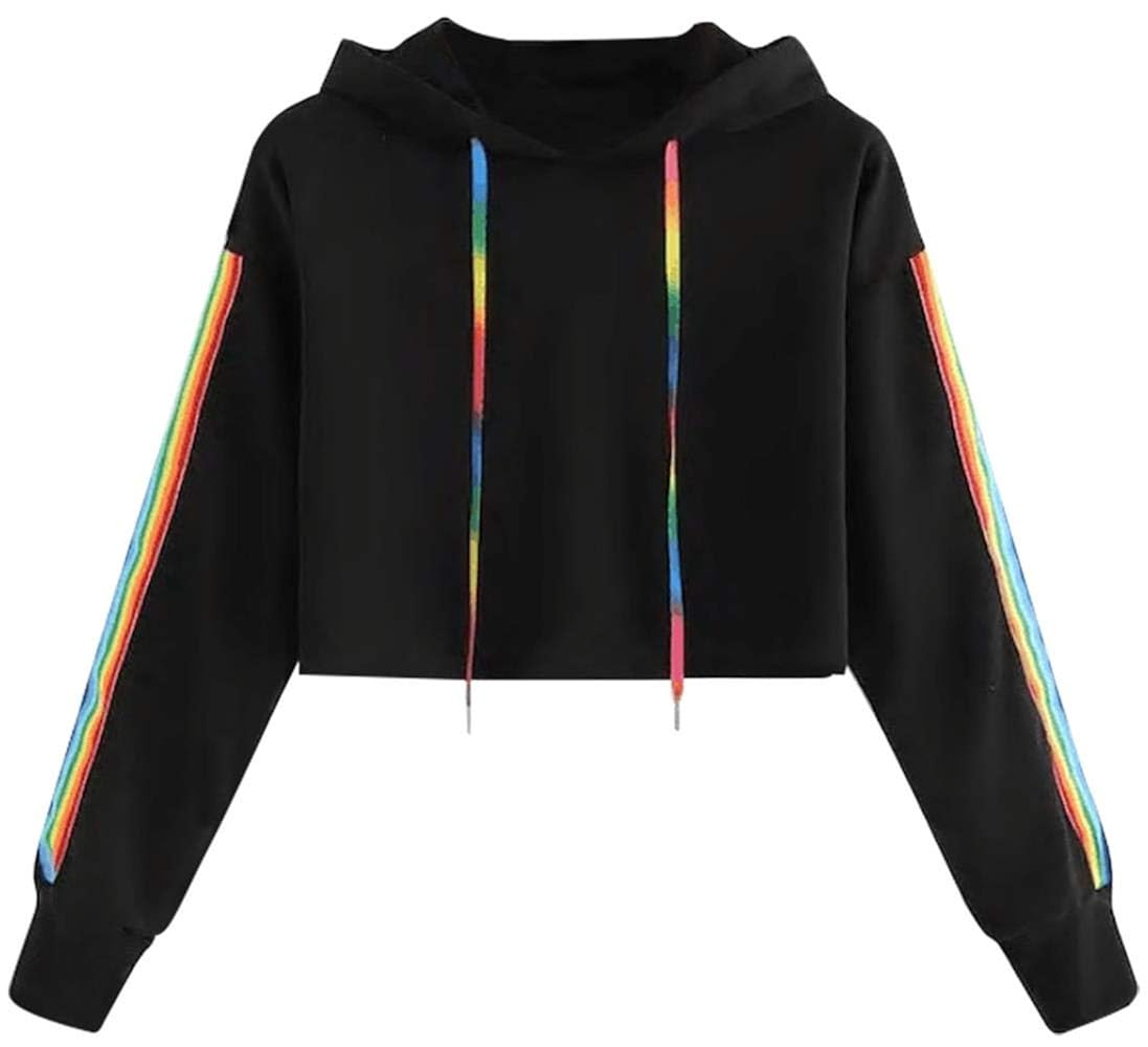 - Crop top hoodie rainbow free shipping