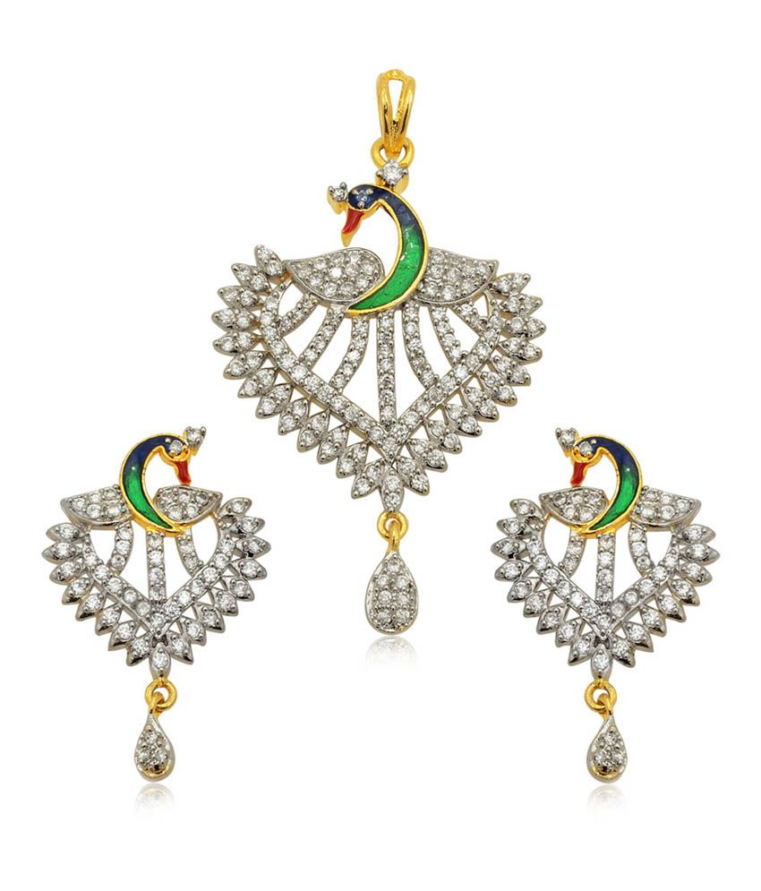 Vaishnavi name pendant clearance, Vaishnavi Gems Beautiful Enemling Peacock With Cz Stone Pendant Set: Buy Vaishnavi Gems clearance