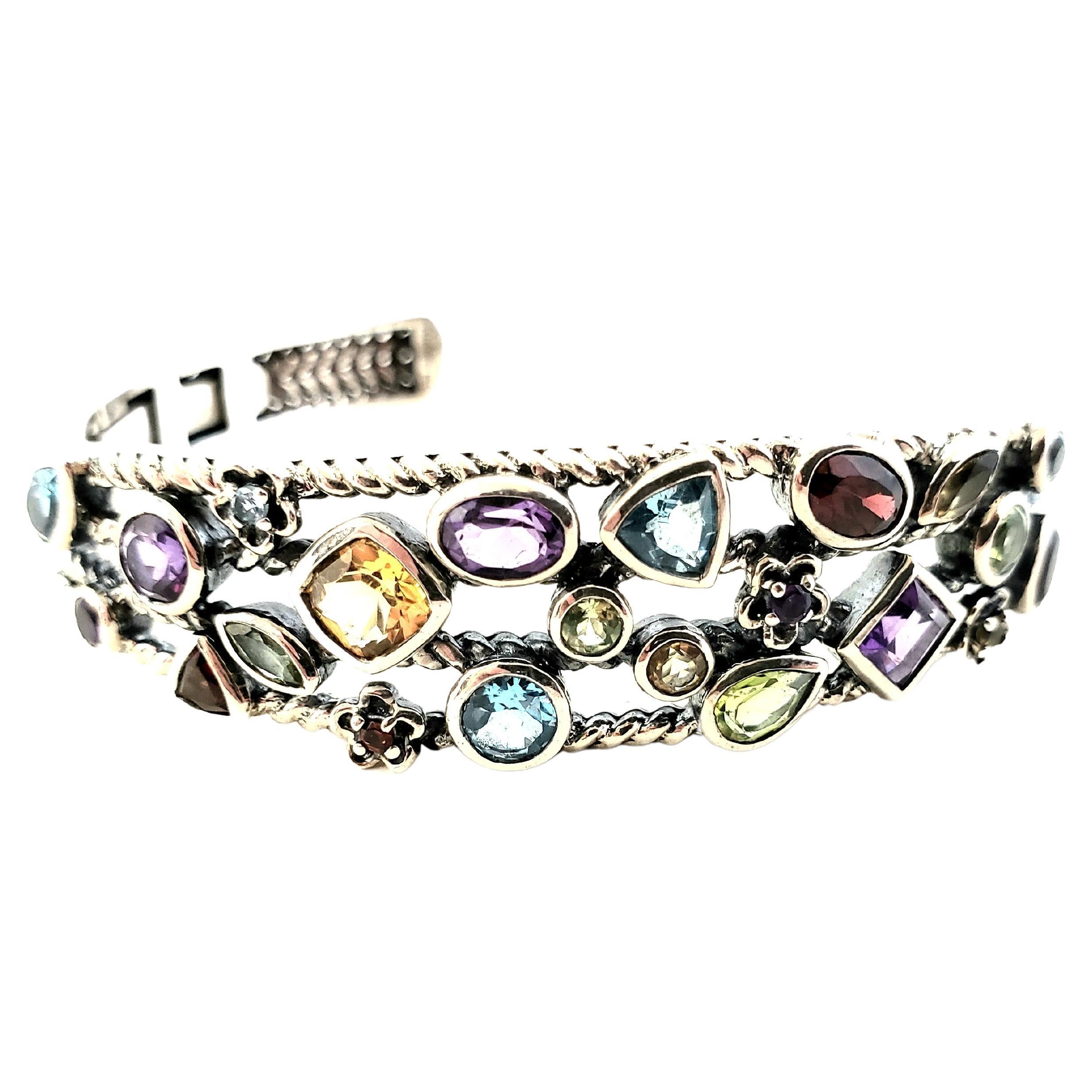 Silver cuff bracelet with stones clearance