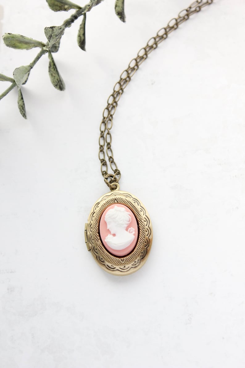 Pink locket clearance, Pink Locket Necklace Photo Locket Cameo Necklace Vintage | Etsy clearance