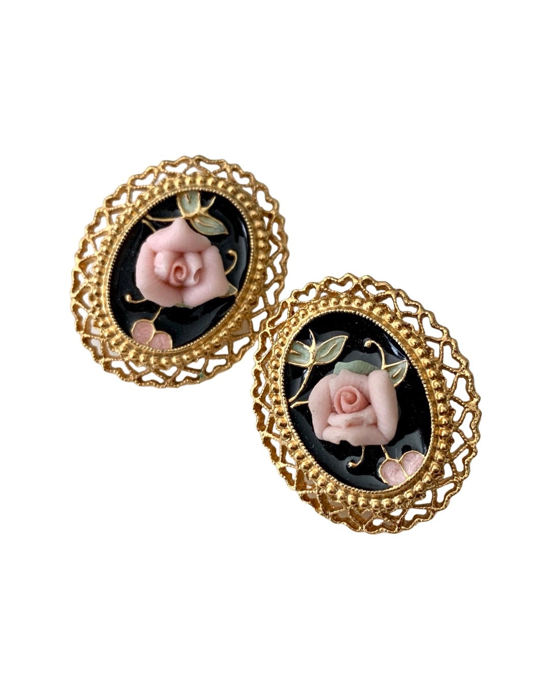 Porcelain rose earrings clearance