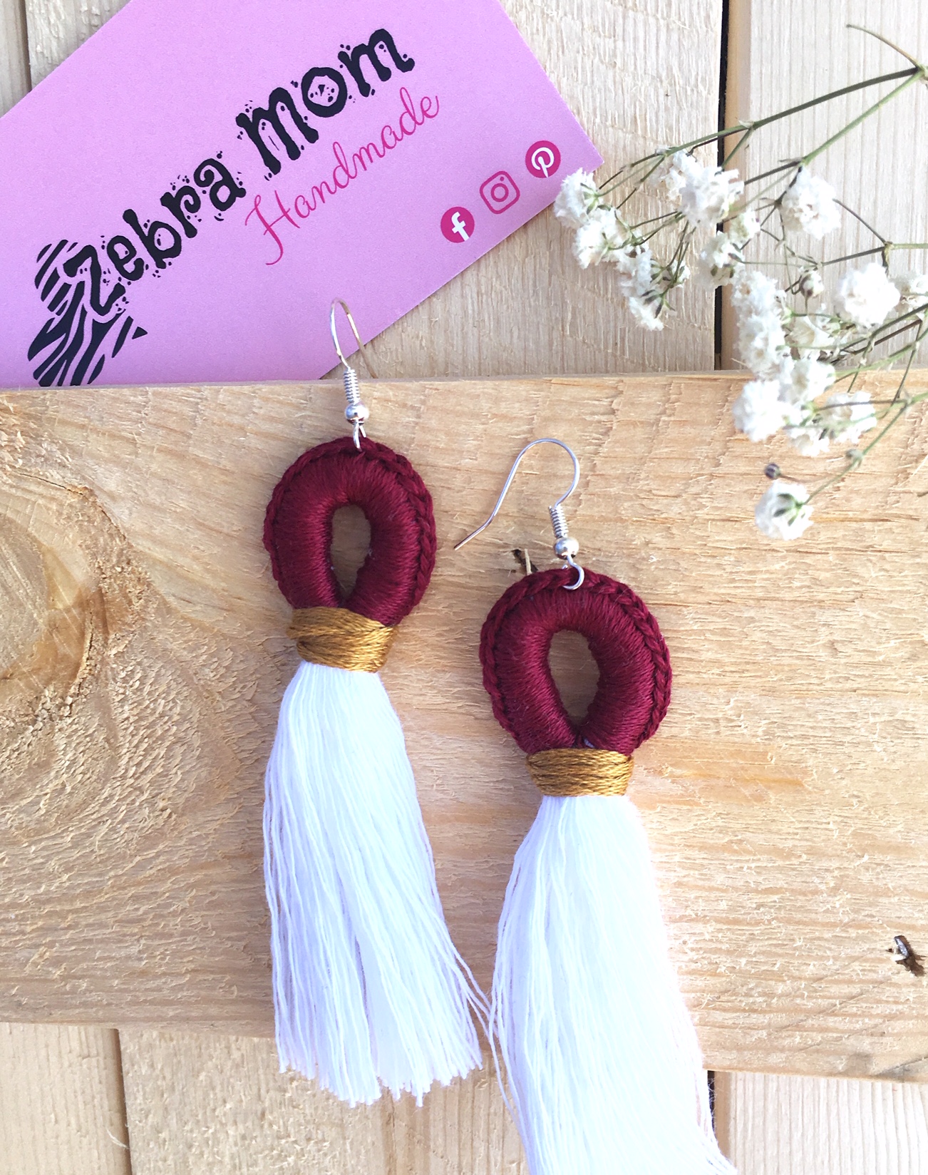 - Maroon and gold earrings