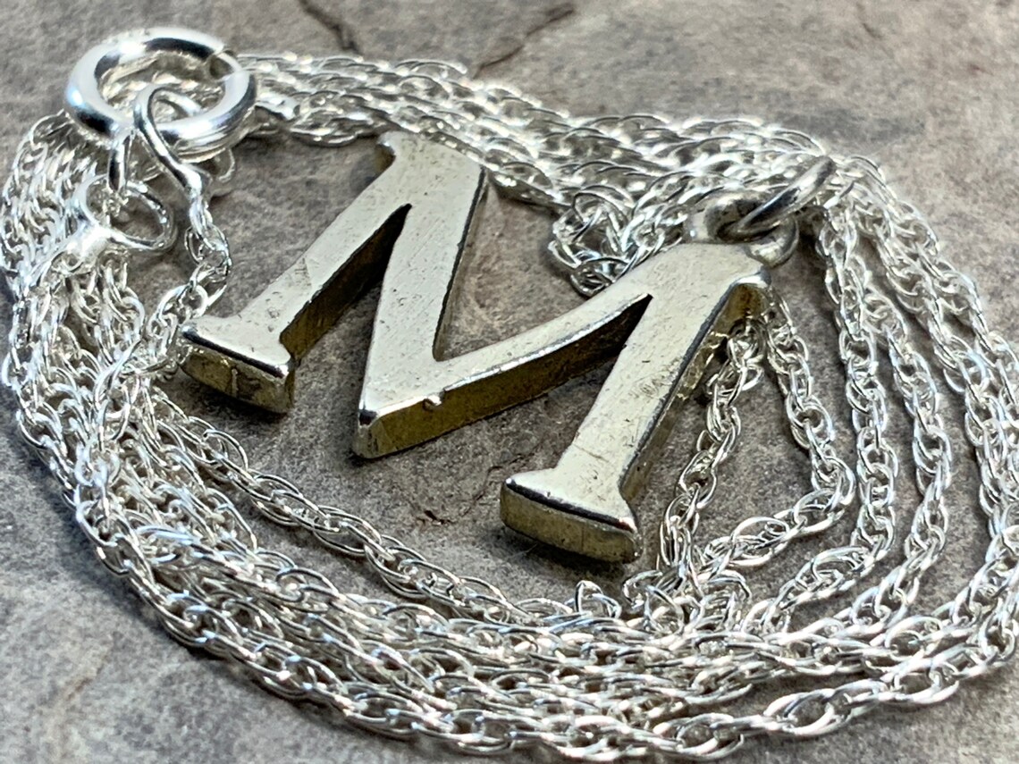 Letter m silver necklace clearance, Vintage Sterling Silver Letter M Pendant Necklace | Etsy clearance