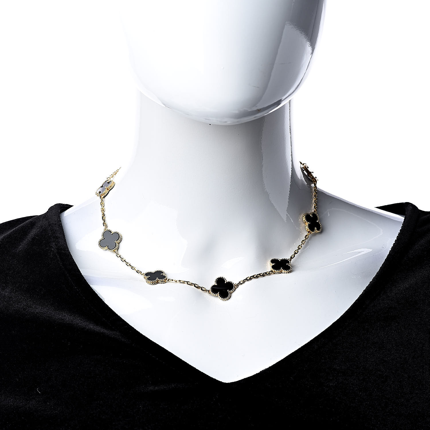 Van cleef and arpels black necklace clearance, VAN CLEEF & ARPELS 18K Yellow Gold Black Onyx 10 Motifs Vintage Alhambra Necklace 501161 clearance