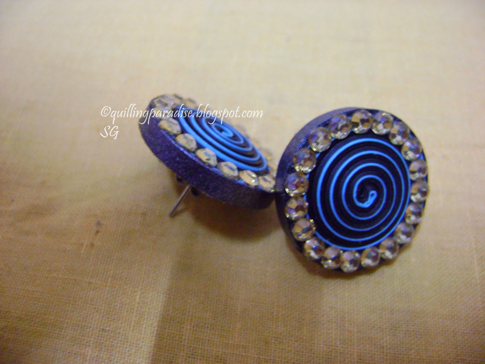 Quilling paper stud earrings designs clearance, Quilling Paradise : Paper Earring Stud-Black and Aqua Blue clearance