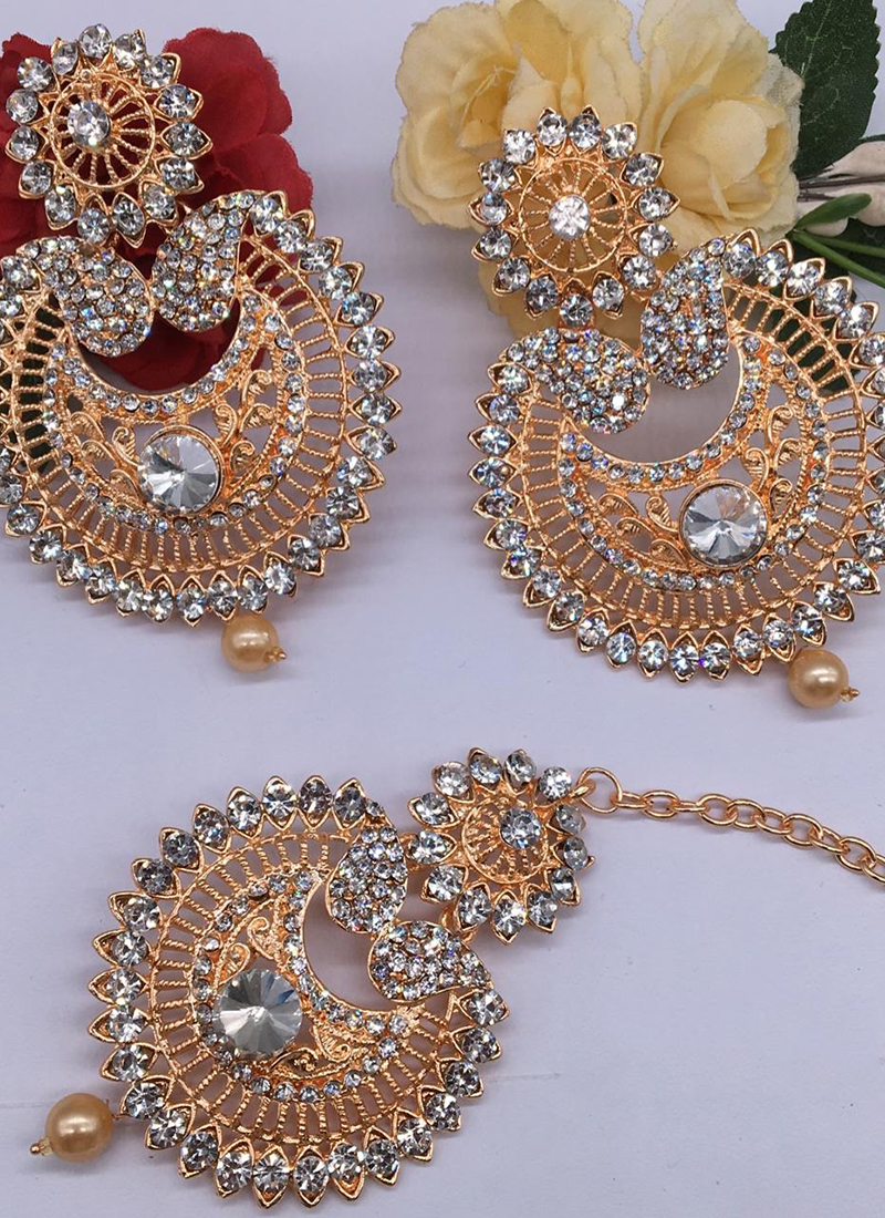 Long earrings with maang tikka clearance, Traditional Kundan Maang Tikka with Earrings | FashionCrab.com clearance
