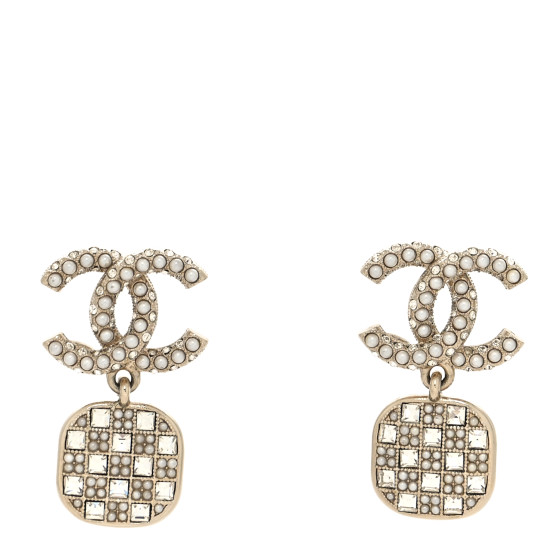 Chanel baguette earrings clearance, CHANEL Baguette Crystal High Society CC Drop Earrings Gold 1169318 | FASHIONPHILE clearance