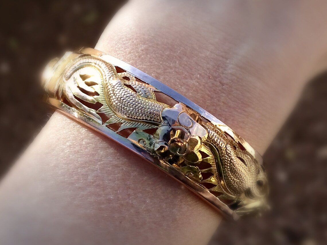 Dragon phoenix bracelet clearance, Fine gold bangle dragon phoenix bracelet 14k gold traditional | Etsy clearance