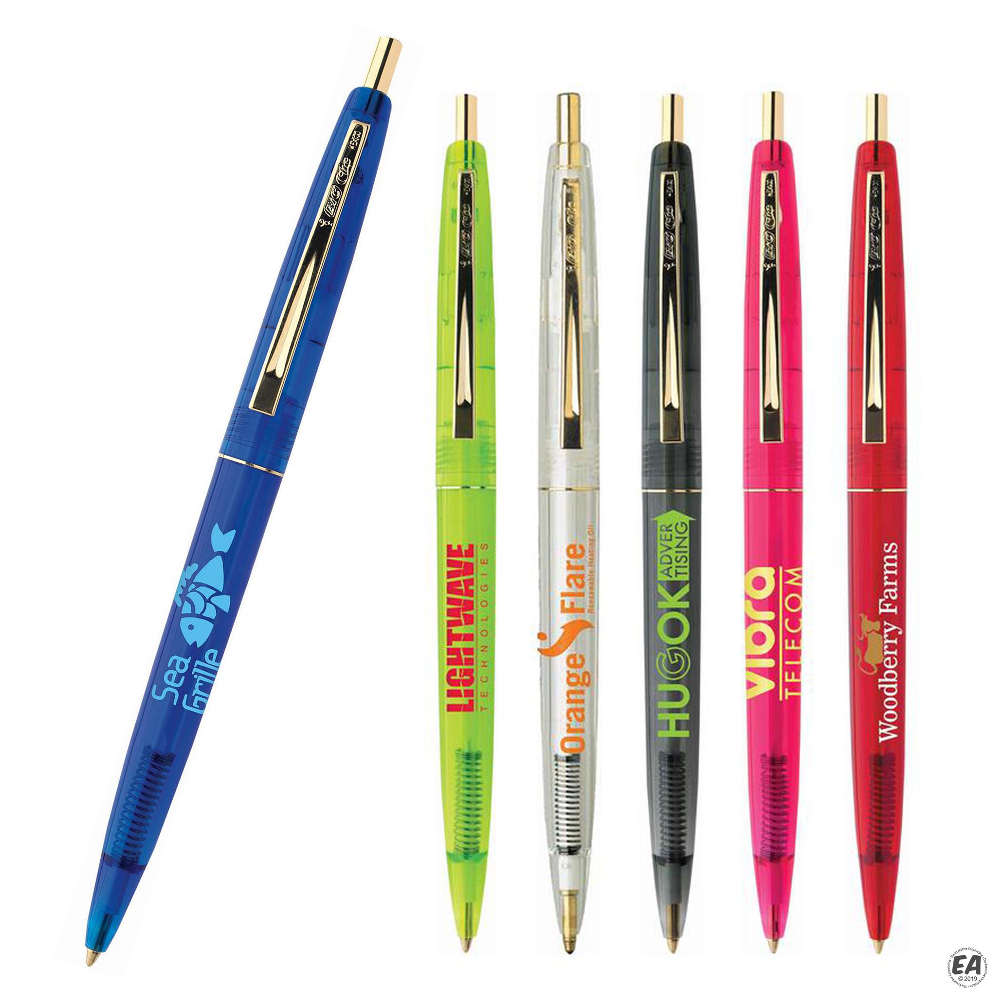 Bic pens personalized clearance, Promotional BIC Clic Clear Pen with Gold Trim | Customized Translucent Pens | Custom BIC Clic clearance
