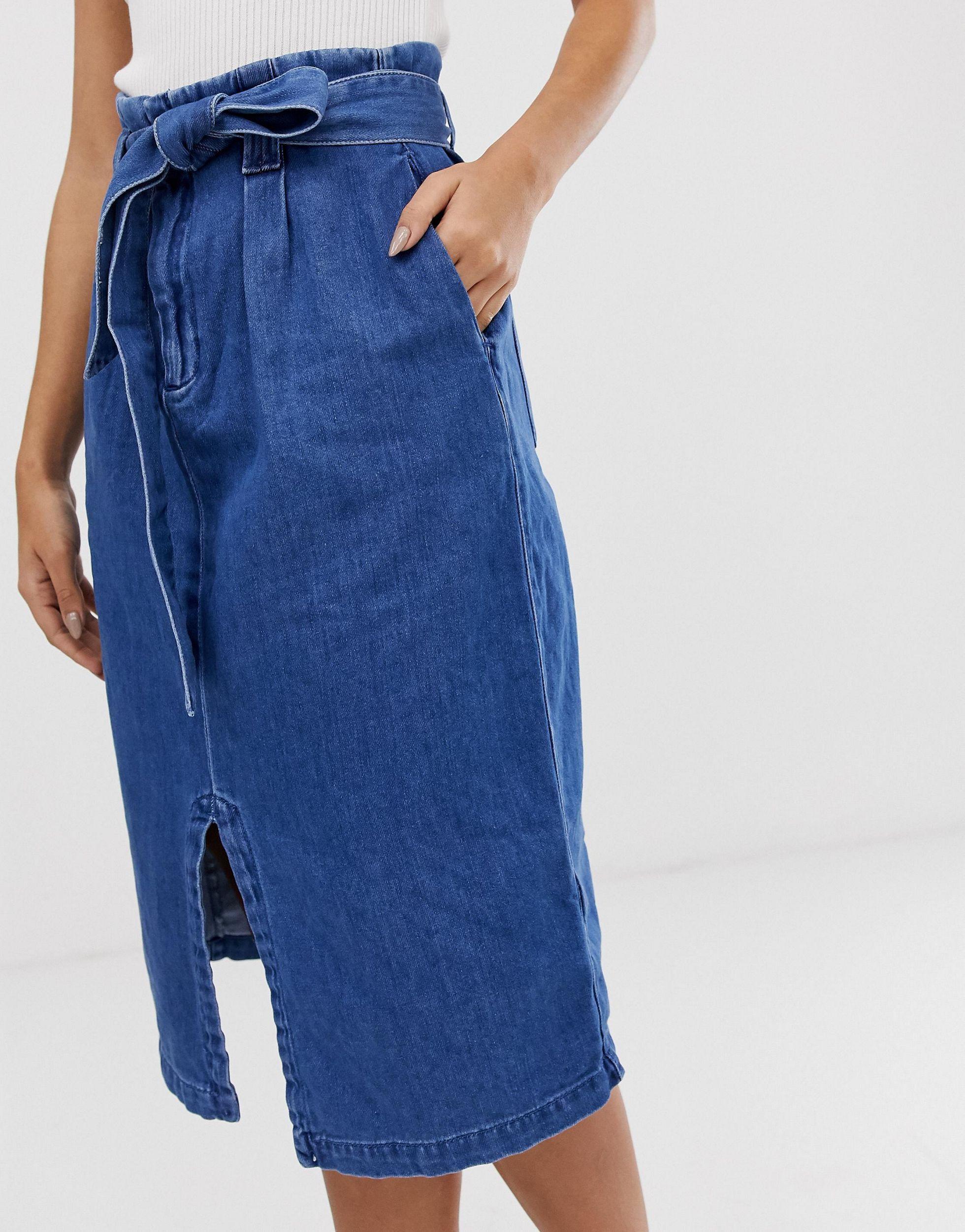 - Vero moda denim midi skirt with tie waist outlet