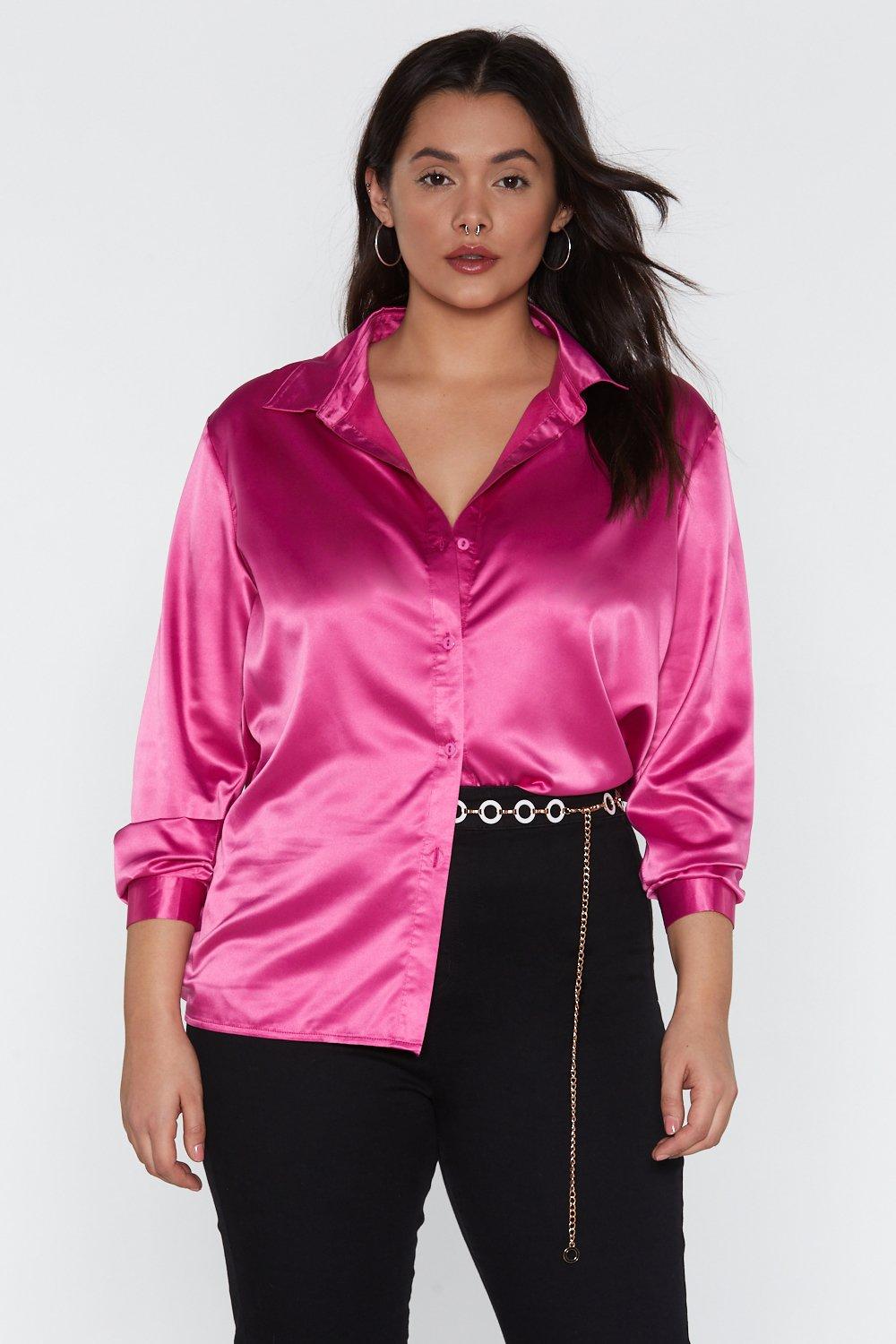 - Pink silk button up shirt shop