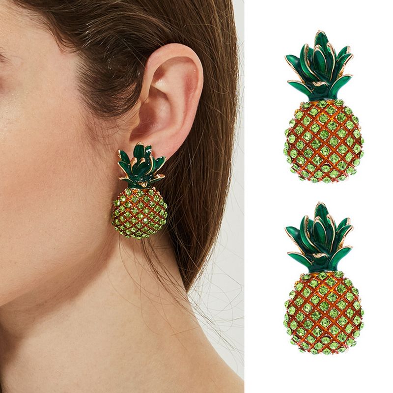 Pineapple clip on earrings clearance, 2020 Women Pineapple Stud Earring Rhinestone Fruit Pineapple Earring Fashion Jewelry For Gift clearance