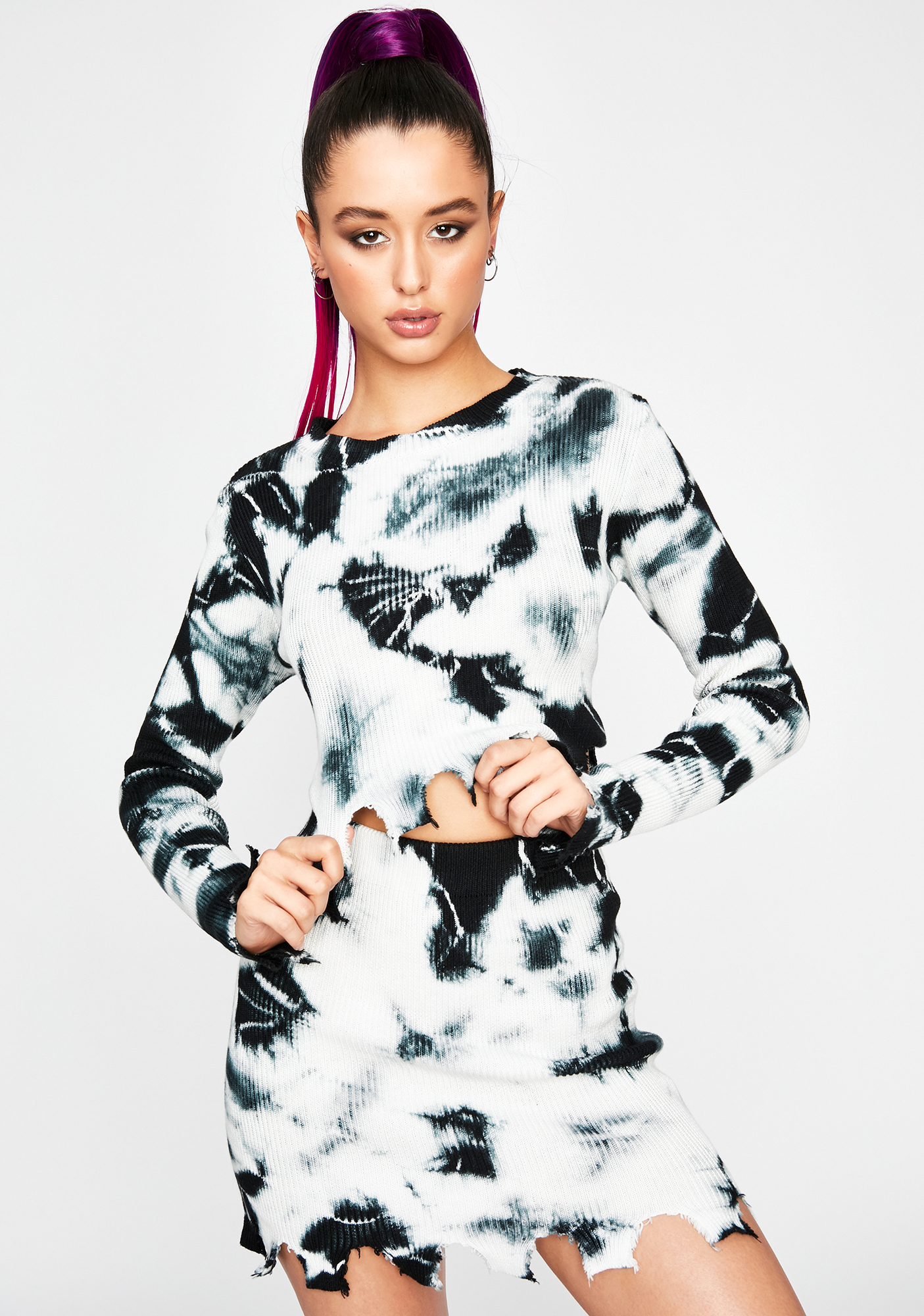 Tie dye distressed sweater clearance, Tie Dye Distressed Sweater Skirt Set - Black | Dolls Kill clearance