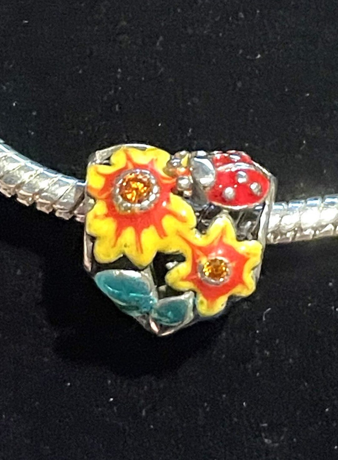 Sunflower pandora bracelet clearance, Sunflower Charm Bangle | Bangle bracelets with charms, Charm bangle, Pandora leather bracelet clearance