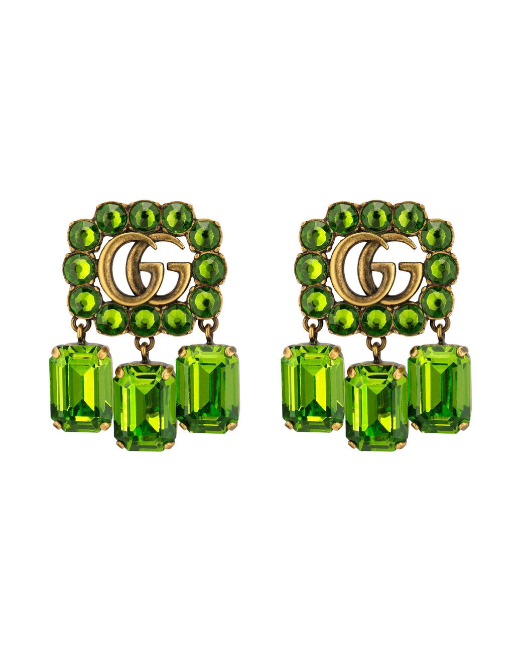 Gucci double g crystal earrings clearance, Gucci Green Crystal Double G Earrings | Lyst clearance