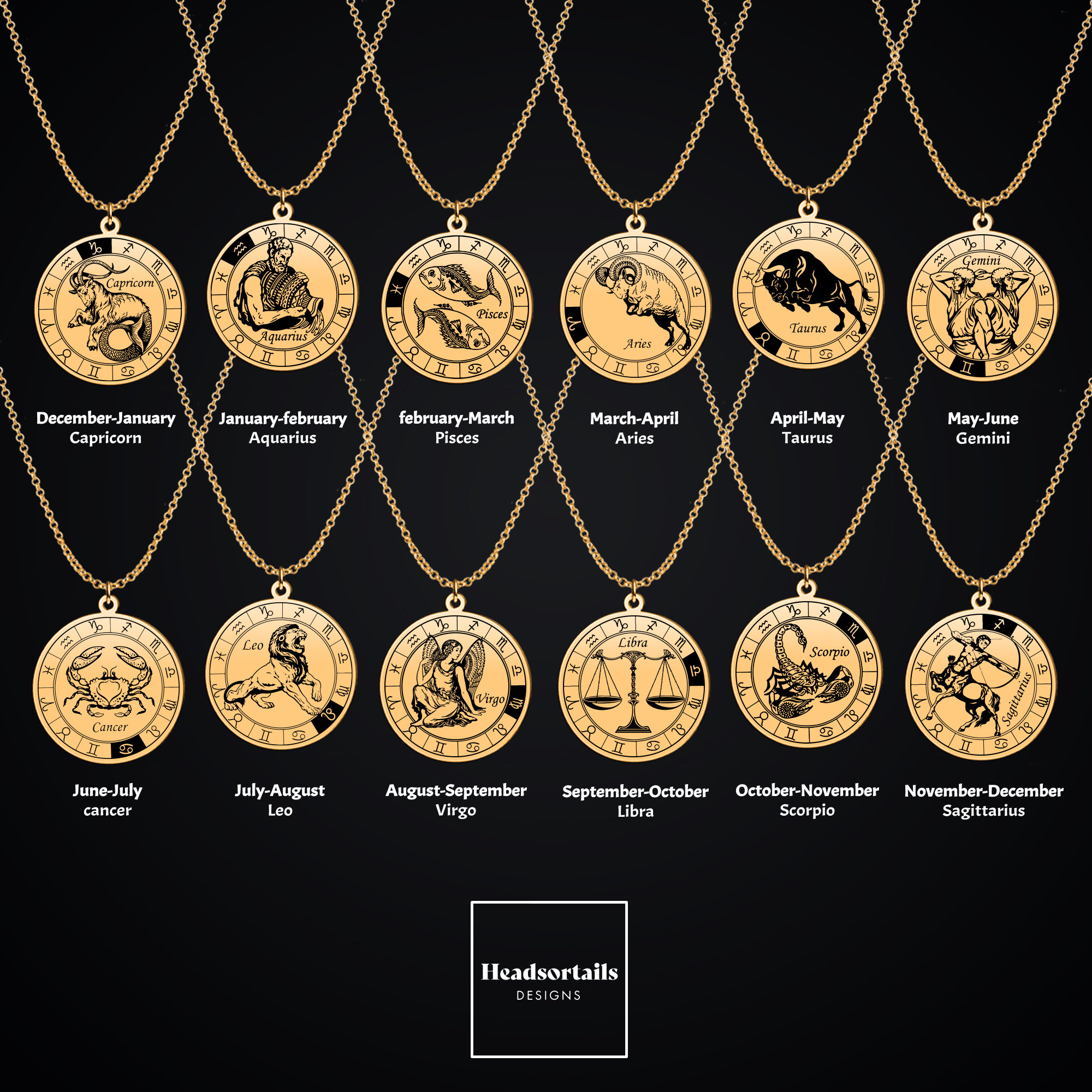 Horoscope chain clearance, 12 Horoscope Pendant Necklaces For Women Men Gold Aries Leo 12 Constellations Zodiac Sign clearance