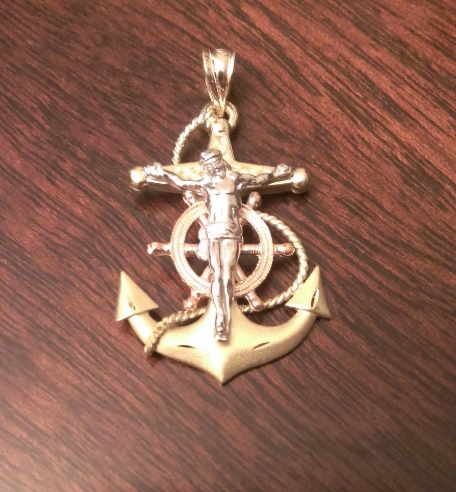 Mariners cross pendant clearance, 14K SOLID GOLD TRI-COLOR MARINER'S ANCHOR CRUCIFIX CROSS CHARM PENDANT 1.5" INCH | eBay clearance