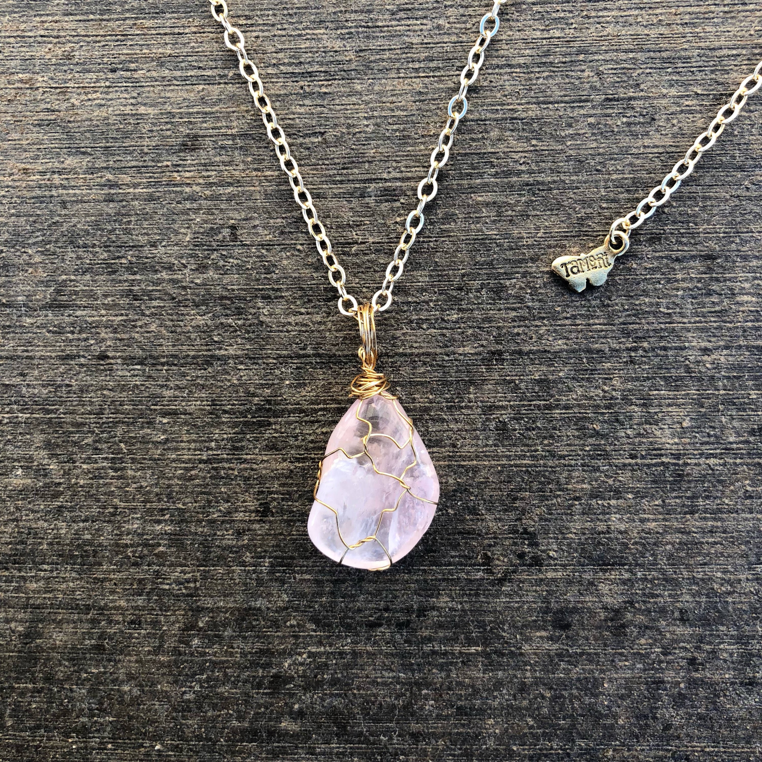 Rose cortez crystal necklace clearance, Wire-wrapped Rose Quartz Necklace clearance
