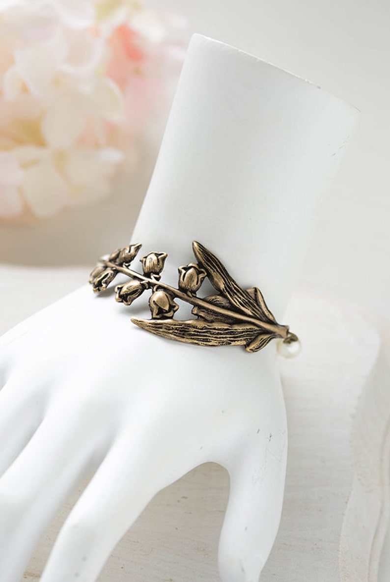 Lily of the valley bracelet clearance, Lily of the Valley Bracelet Cream White Pearls Antiqued Brass | Etsy clearance
