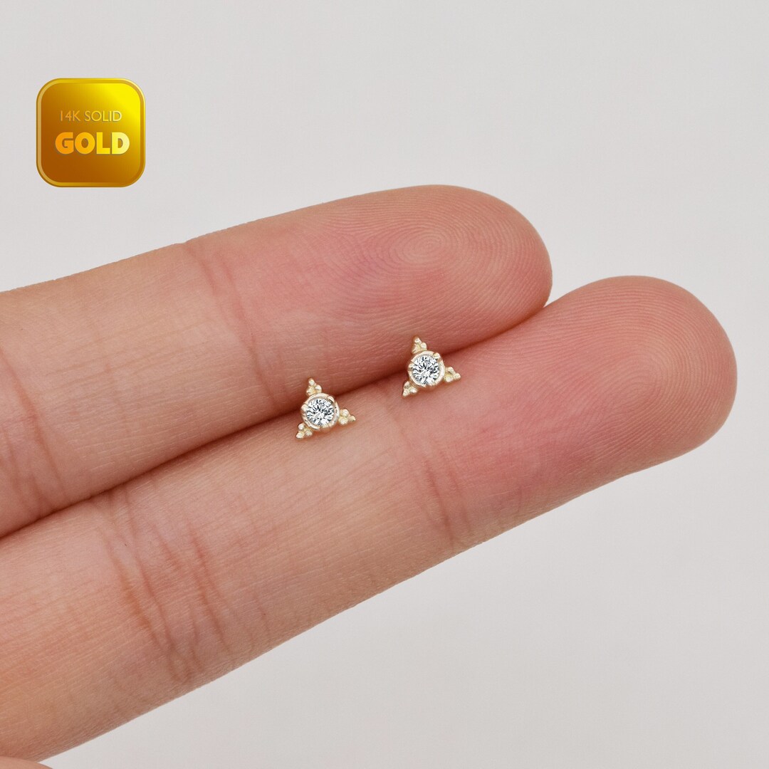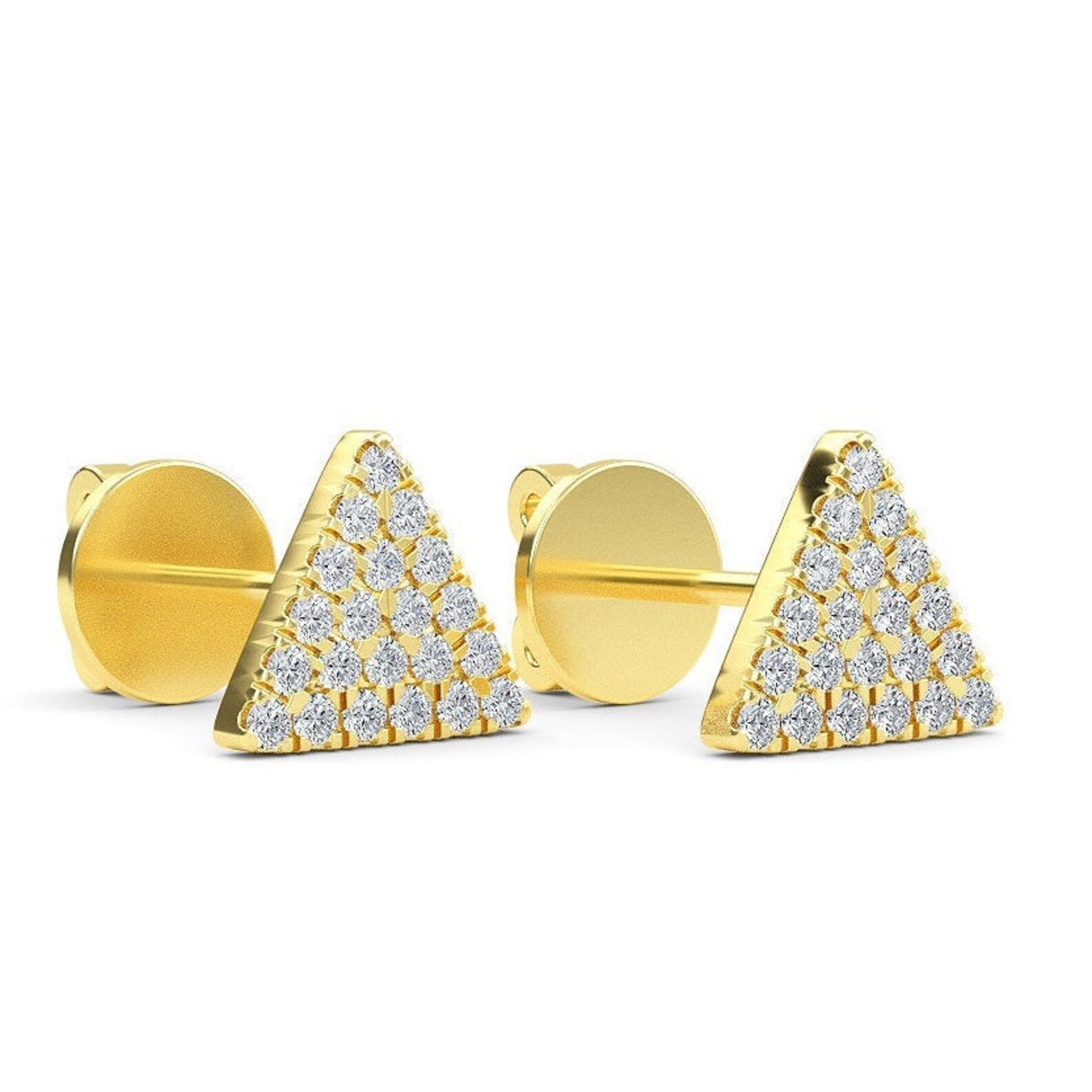 Triangle stud earrings gold clearance, Triangle Stud Earrings / 14K Gold Diamond Studs Earrings / | Etsy clearance