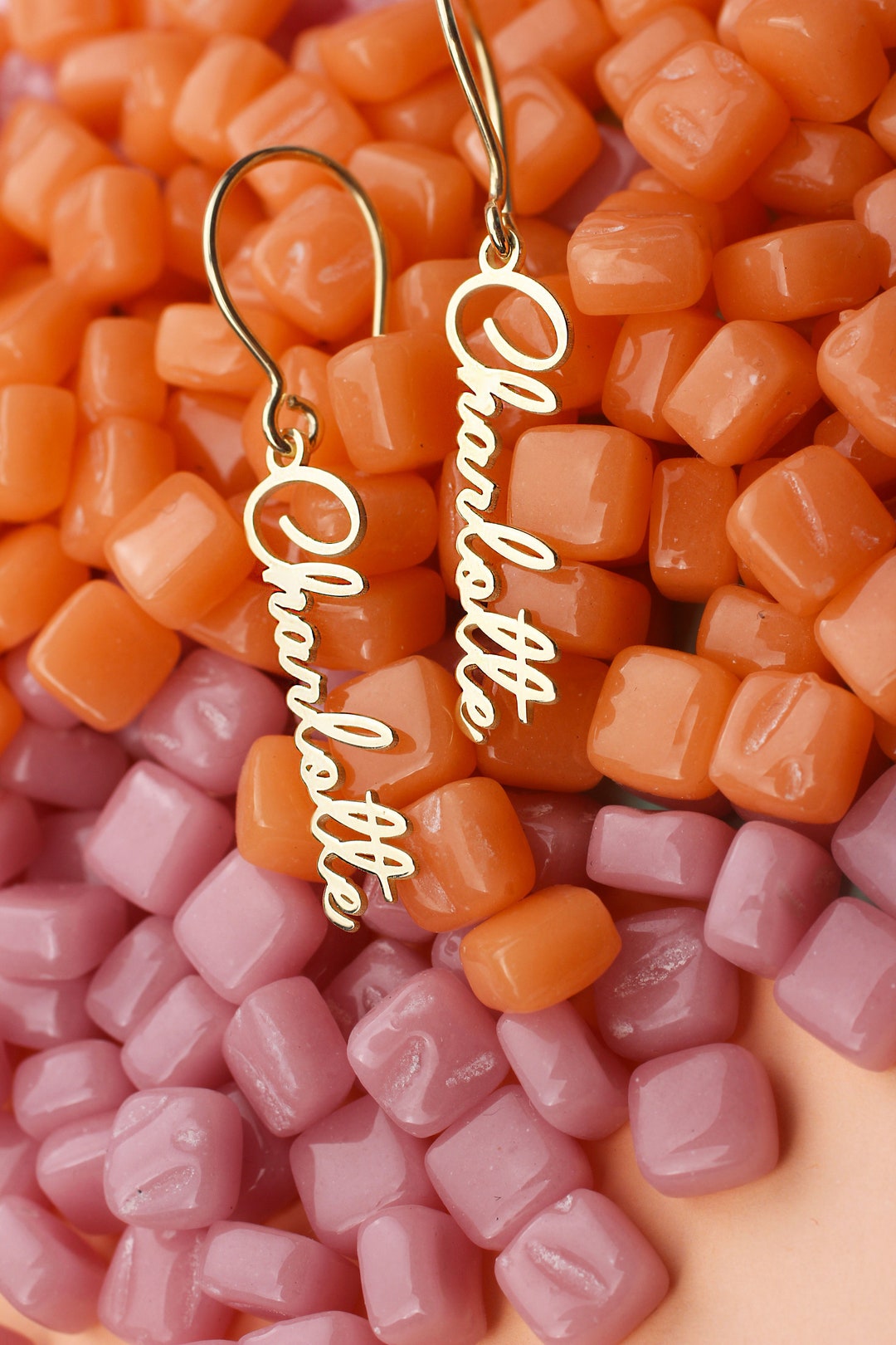 - Vertical name earrings