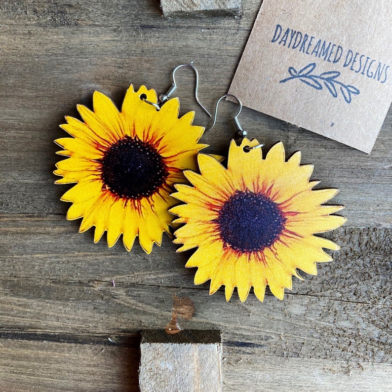 - Wooden sunflower earrings shop