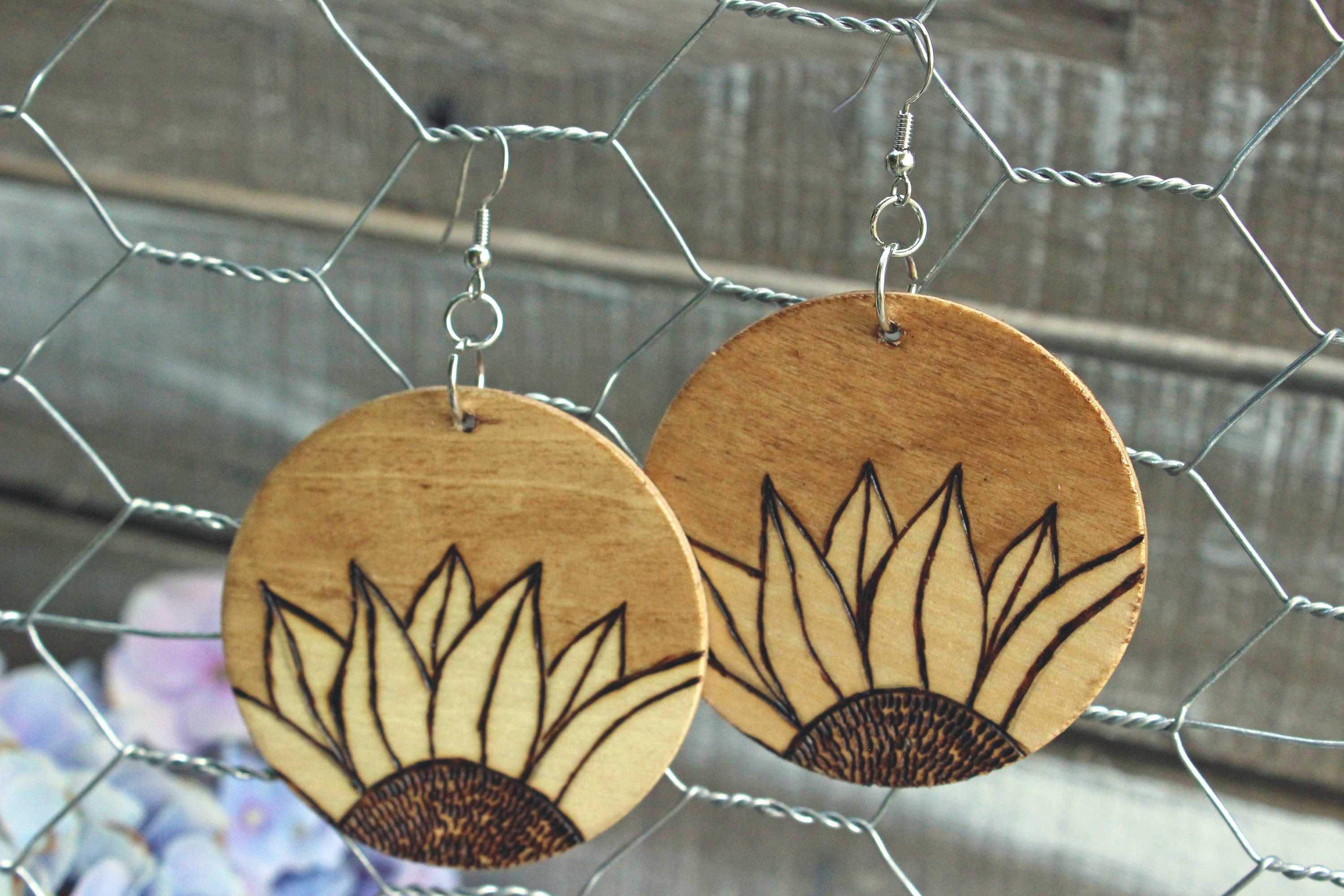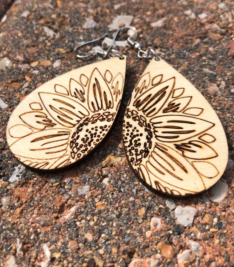 - Wooden sunflower earrings outlet