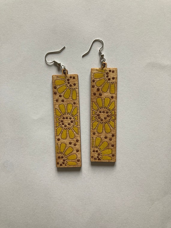 Wooden sunflower earrings clearance, Painted Wood Sunflower Earrings Sunflower Earrings Flower - Etsy clearance