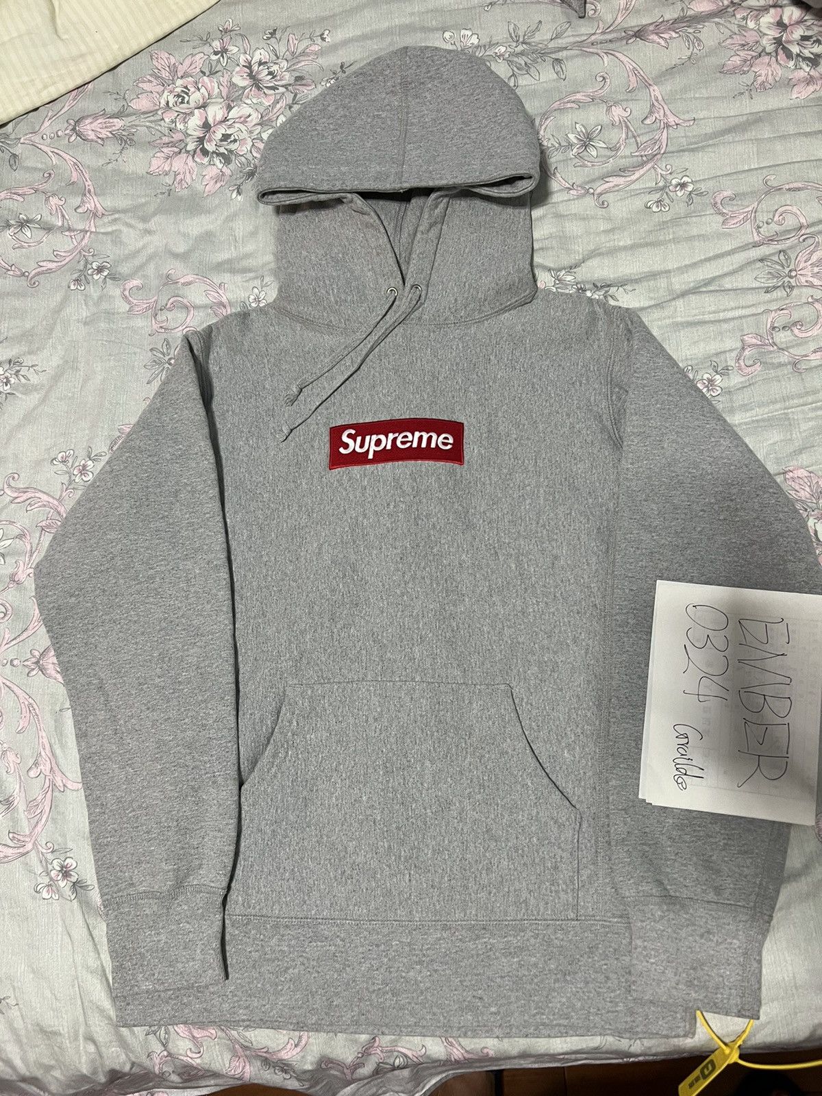 - Gray supreme box logo hoodie