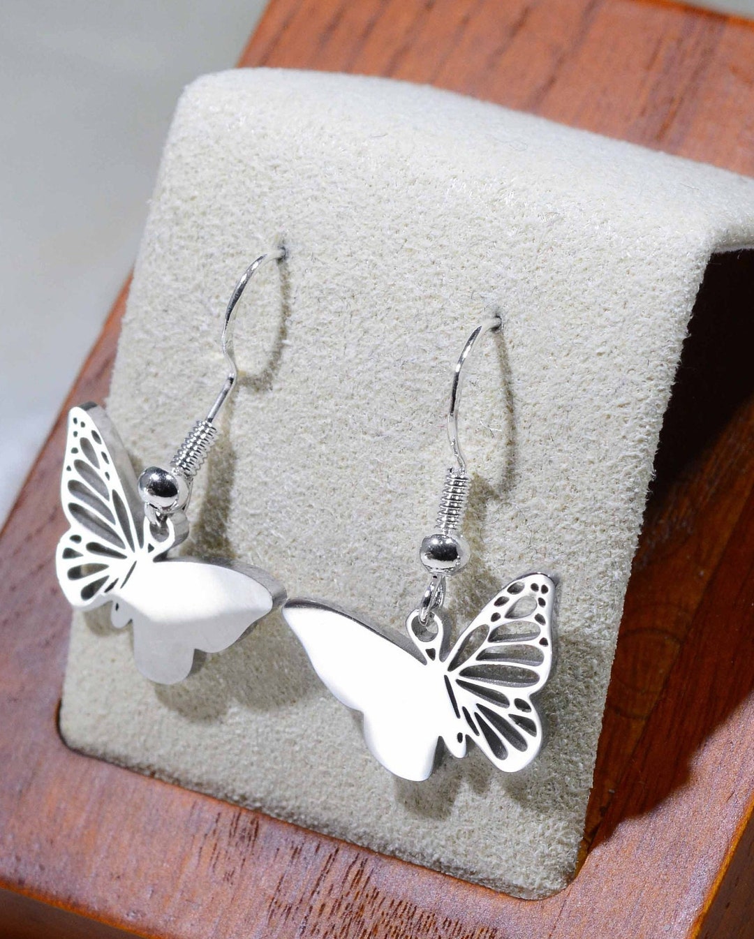 Silver butterfly drop earrings clearance, Silver Laser Cut Stainless Steel Butterfly Dangle Earrings Silver Earrings Nature Jewelry Silver clearance
