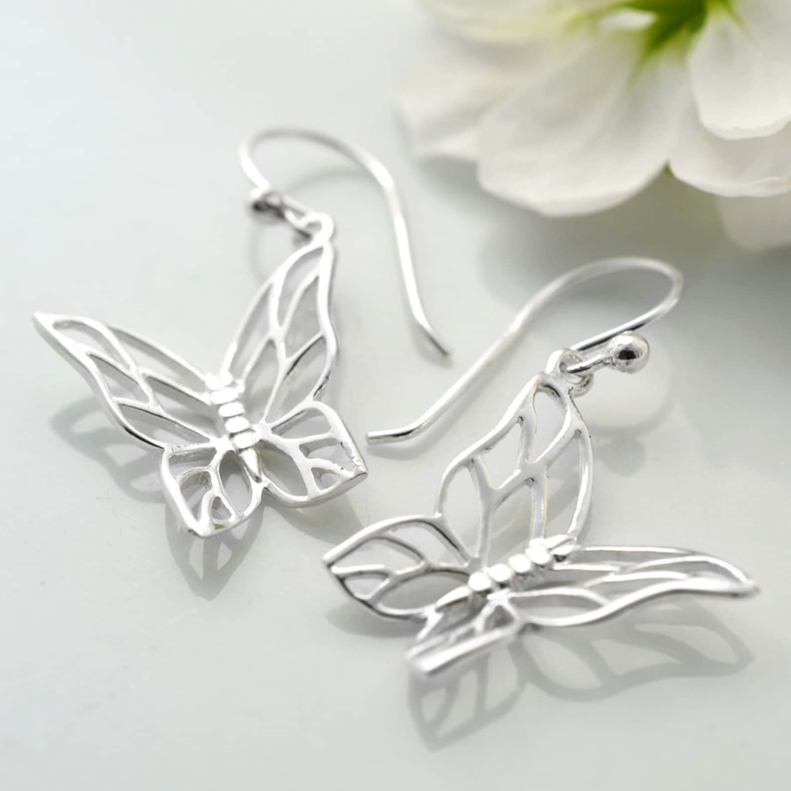 - Silver butterfly drop earrings outlet