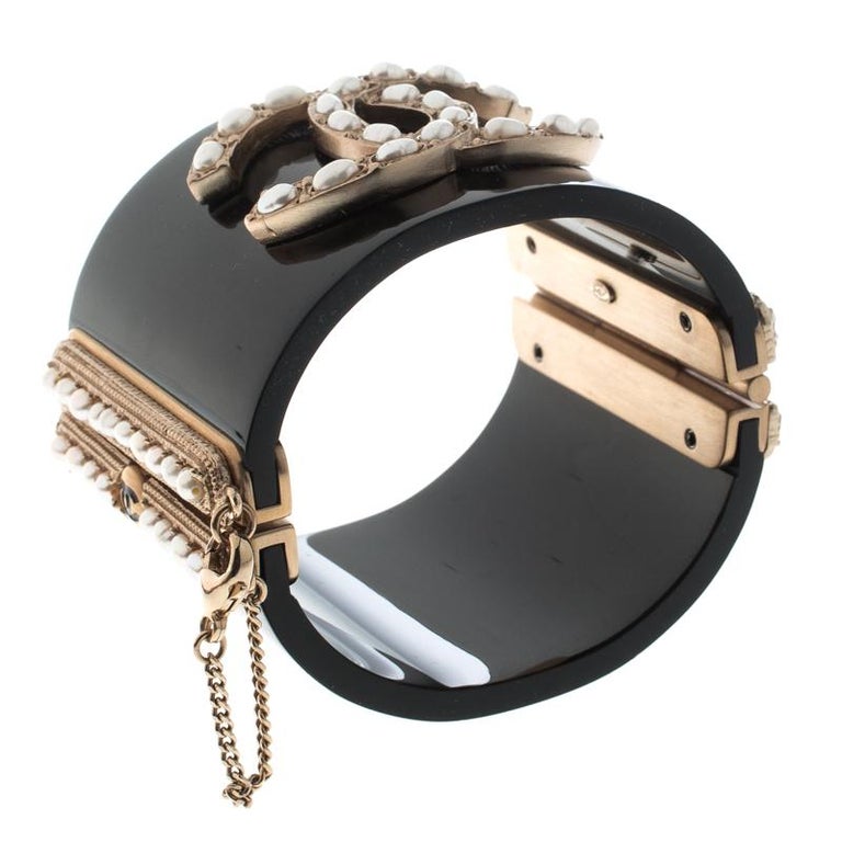 Faux chanel cuff bracelet clearance, Chanel CC Faux Pearl Black Resin Wide Cuff Bracelet Chanel | The Luxury Closet clearance